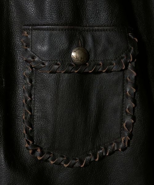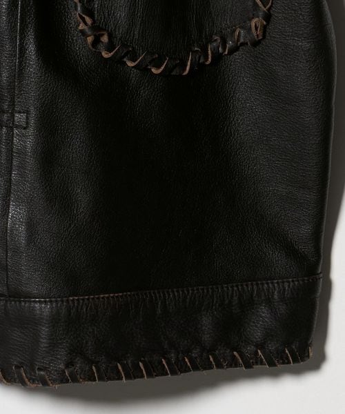ブランドでも人気を誇るレザーアイテムから、編み上げディティールが特徴のトラッカージャケットを別注オーダーで制作。アメリカンヴィンテージを思わせるシルエットと、細部にまでこだわったディティールは、レザーを愛する<BOWWOW>ならではの仕上がり。革の茶芯が覗く加工感や風合いは、リアルな経年変化を薫らせ、ブランドの真骨頂を感じさせます。