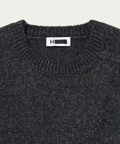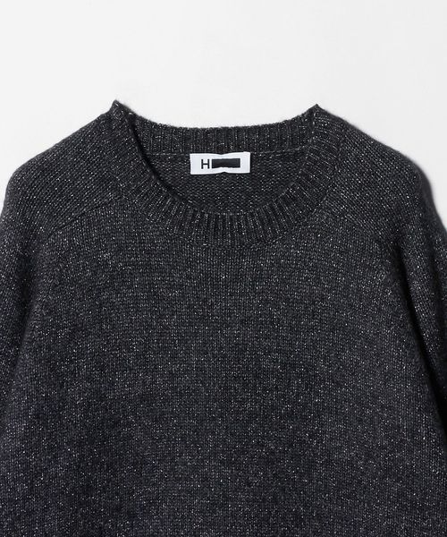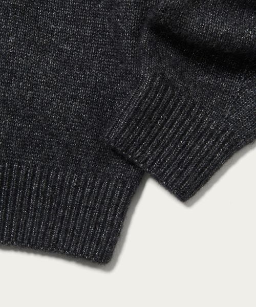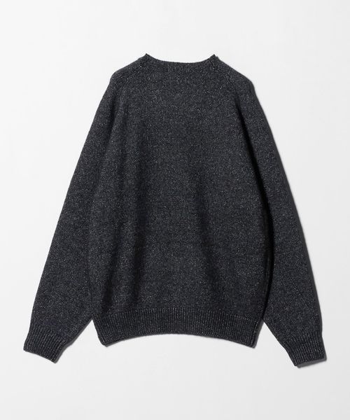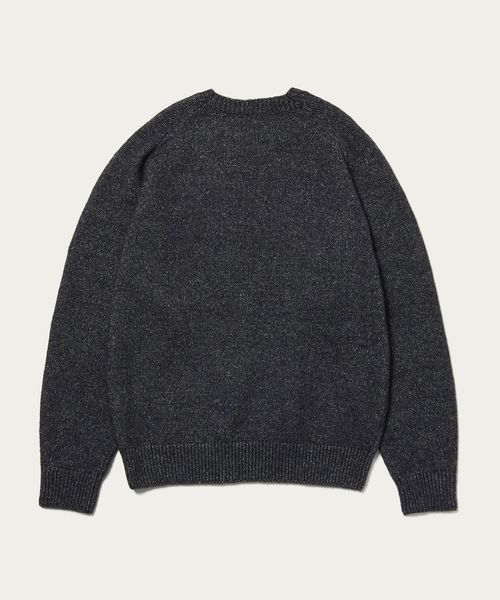 キラキラとしたスペーシーな表情が覗く、クルーネックニットプルオーバーです。ウールをベースにラメ糸を撚糸した特殊素材を採用しています。さりげない煌めきとサドルショルダーのクラシックなムード、メランジベースのカラーリングが絶妙に調和した魅力的なデザイン。無造作に纏うだけで装いに高揚感を与え、クラス感あふれる都会的なカジュアルスタイルに導きます。
