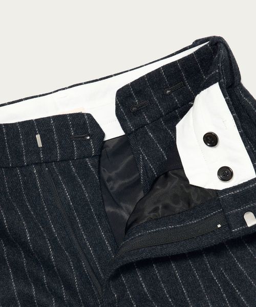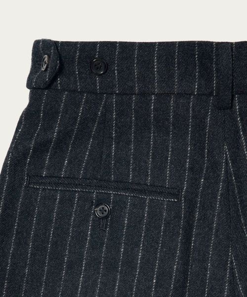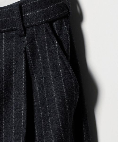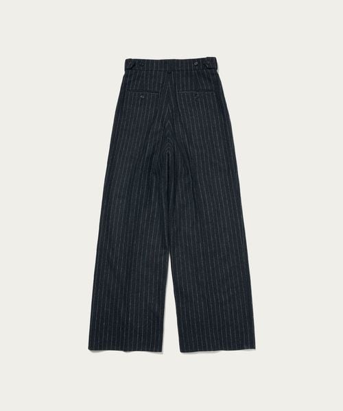 ハイウエストでリラックス感のあるワイドシルエットパンツを別注オーダー。<INSCRIRE>オリジナルのチョークストライプ柄を採用することでインパクトのある表情に。同シリーズのジャケット(対象品番:12225000001)とのセットアップもおすすめです。