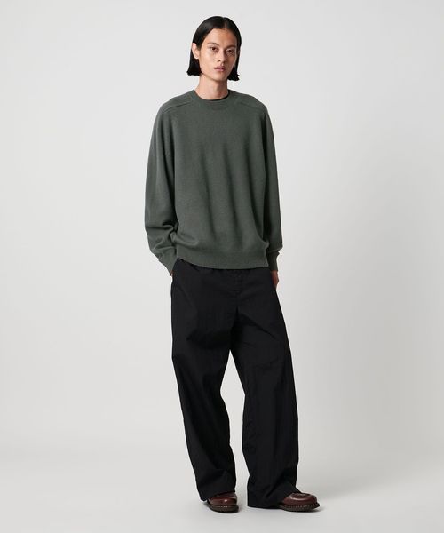コンテンポラリーなシルエットバランスで楽しめる、クラシックムードのサドルショルダーニットです。スコットランドの老舗紡績メーカー「TODD&DUNCAN」社の上質なウールを採用しています。ゆったりとしたワイドな身幅をリブで強めに絞ることで、丸みのあるシルエットに仕上げました。深みのあるカラーリングと上質な素材感が際立ち、クラス感漂うスマートなカジュアルスタイルに導きます。