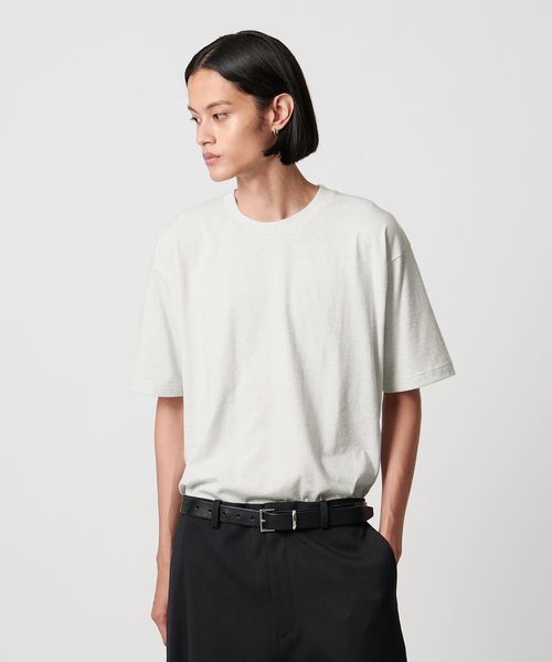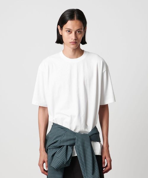 「毎日着られる上質なTシャツ」をコンセプトにお作りした、定番ショートスリーブTシャツです。上質な原料を独自にブレンドしたハイブリッドコットンを使用しています。脇の縫い目がないチューブボディは、立体的に体のラインに沿う着心地の良さでストレスを軽減。日常使いに適したほどよいゆとりを生むシルエットで、一枚着からインナーまで楽しめる汎用性の高さが魅力です。計算尽くされたバランスが高揚感を生み出し、洗練された大人のスタイルに導く万能な一着。
