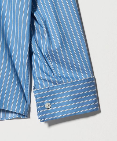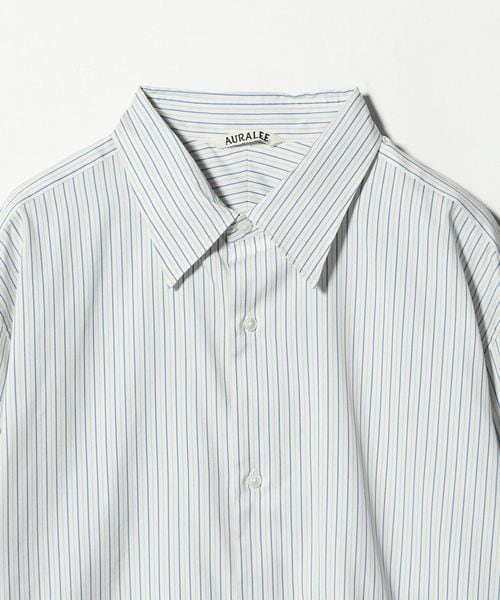 <AURALEE>COTTON SILK STRIPE DOUBLE―CUFF SHIRT/シャツ