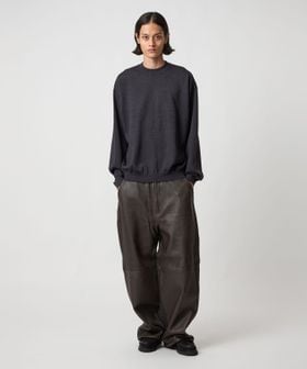細番手の糸を2本使い、度詰めでしっかりと編み込み張り感のあるボディに仕上げた、クルーネック型のファインゲージニットです。ウール本来の自然な光沢感が際立ち、ハイクオリティでありながらヘビーウェイトTシャツのように着られるタフなボディが魅力です。定番のソリッドウールニットをリニューアルし、今シーズンは密度をより高めて贅沢な表情に。シルエットはリブ部分にテンションをつけた、メリハリのある万能なデザイン。余分な毛羽感が抑えられたクリアな風合いで、秋口から冬場まで気負わず袖を通せるマルチな一着。