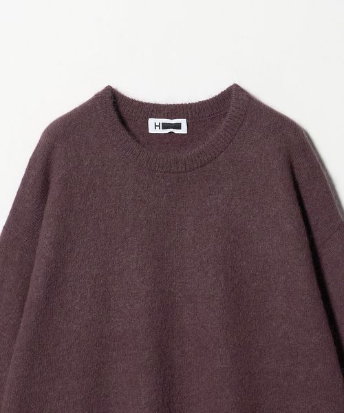 <H>モヘヤ クロップド クルーネック ニット