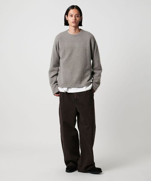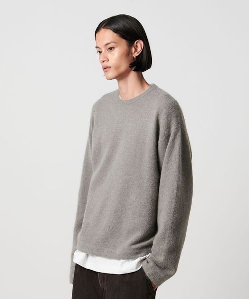 ふわっとエアリーな質感を活かした、クロップドバランスのニットプルオーバーです。イタリア「LINEAPIU」社の素材を採用し、モヘヤをブレンドした上質な素材感が魅力です。毛足がありながらも薄手で軽やかな風合いが初秋から取り入れやすく、色気のあるシアーな表情がファッションムードを高めてくれます。すっきりとした着丈が際立つ長めのスリーブに、袖口と裾はリブを無くすことでTシャツライクなカジュアルフィーリングが叶う一着。インナー次第で印象が変わり、自由な着こなしで日常のスタイルを新鮮なムードに導きます。