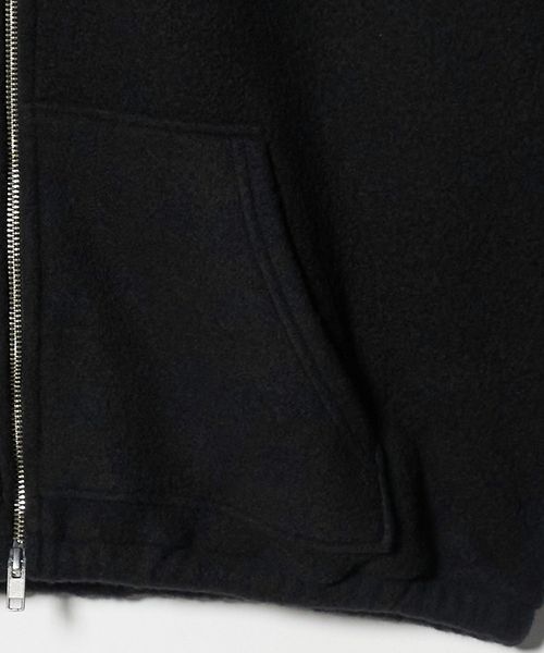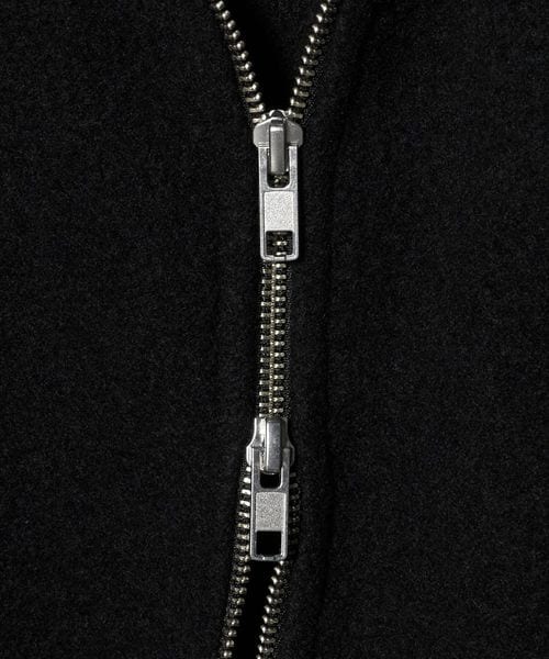 ブラックに身を包んだ、モードな雰囲気が魅力のフリースジップパーカーです。昨年のインラインモデルのハーフジップデザインをフルジップ仕様にアップデート。毛ブレンドの上質な素材感が、ぬくもり溢れる贅沢な着心地を生み出します。機能的なダブルジップに加え、裾のアジャスターを絞ることで丸みのある穏やかなシルエットを演出。カジュアルなフィーリングをまとった洗練された佇まいが、日常のアーバンスタイルに心地よく寄り添います。