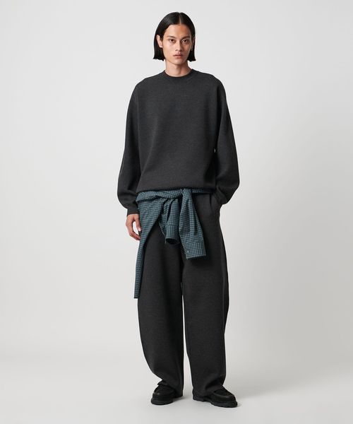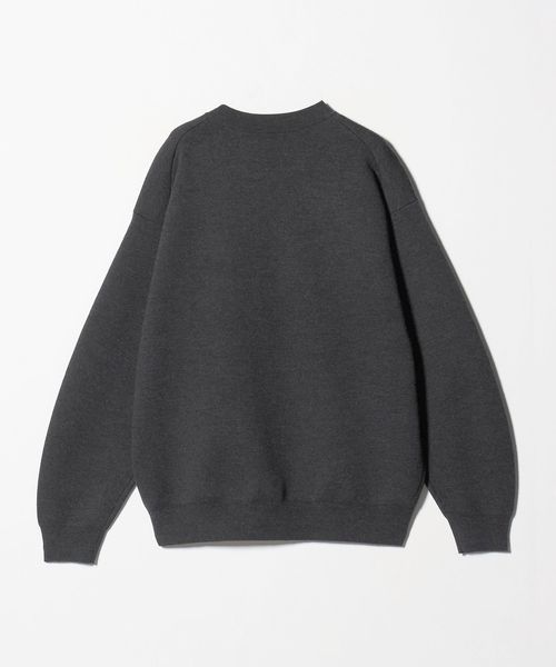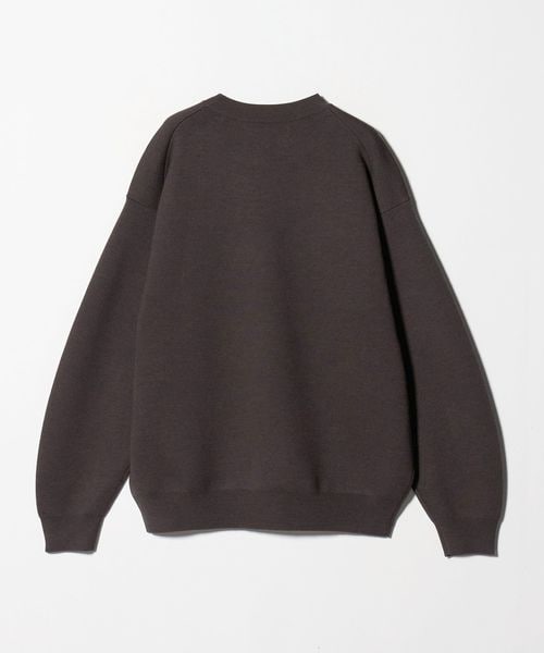 毛羽感の少ないクリーンな表情が特徴のスムースニットプルオーバーです。細番手のウール糸を1本使用し、安定感を出すポリエステル糸をブレンドして、もっちりとしたスムース編みで仕立てたオリジナルのボディ。今シーズンはカーブ袖にリニューアルし、ニット成型編みテクニックでラインを構築しています。ハリのある風合いをベースに、リブで絞った丸みのあるシルエットが存在感を際立たせ、ファッションムードを高めてくれます。素材を活かした上品な佇まいと、スウェット感覚のカジュアルフィーリングが共存したボディバランスが魅力のアイテム。ベーシックなデニム合わせや、同シリーズのパンツ(対象品番:12141999818)とのセットアップコーディネートもおすすめです。