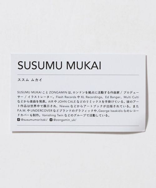 ロンドンを拠点に活動する作曲家 / プロデューサー / イラストレーターであるSUSUMU MUKAI氏によるデザインTシャツです。