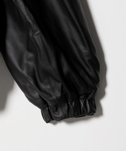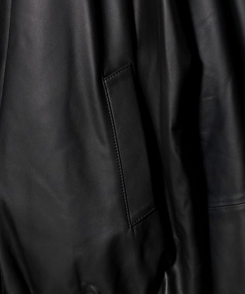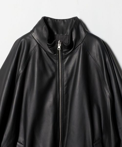 アーカイブのミリタリージャケットから着想を得て、型から作製されたレザーブルゾンです。<ISSUETHINGS>らしいワイドなシルエット、少し太めの袖等が特徴です。柔らかな羊革で仕立てた着心地の良さも魅力。