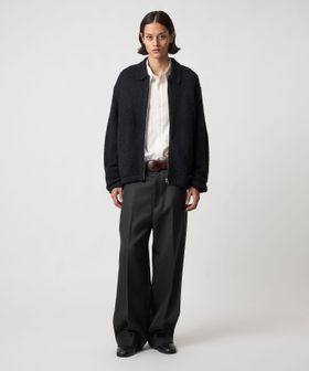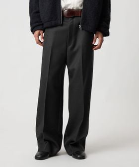 上質な細番手の糸を高密度の綾二重織に織った贅沢な風合いが魅力のワイドスラックスです。仕上げ工程で表面を強くおさえることで、一般的なスーツ生地よりも厚手でハリがあるため、モードな印象に。ノープリーツで腰回りをすっきりとさせ、膝から裾にかけてのワイドレッグが強調されたスタイリッシュなシルエットがポイントです。存在感のあるボリュームが、ショートアウターとも相性がよく、クラス感漂うアーバンスタイルに導きます。