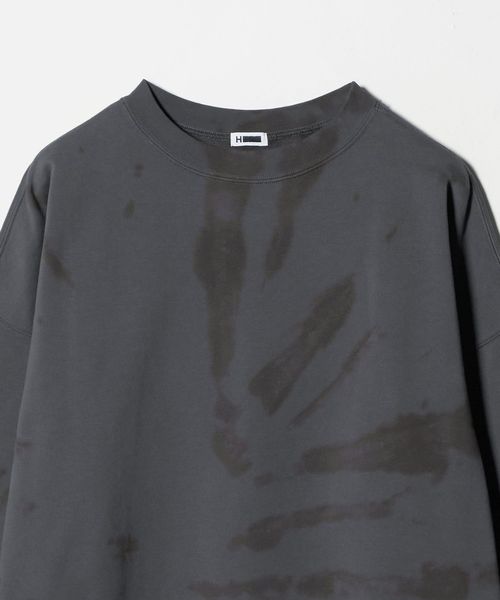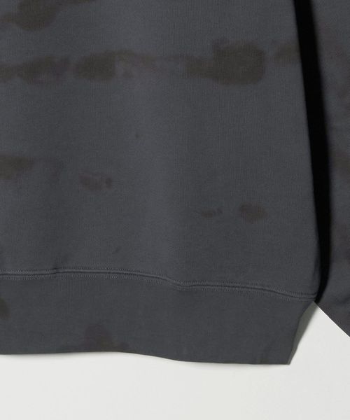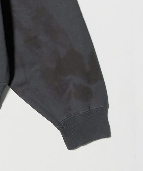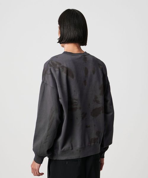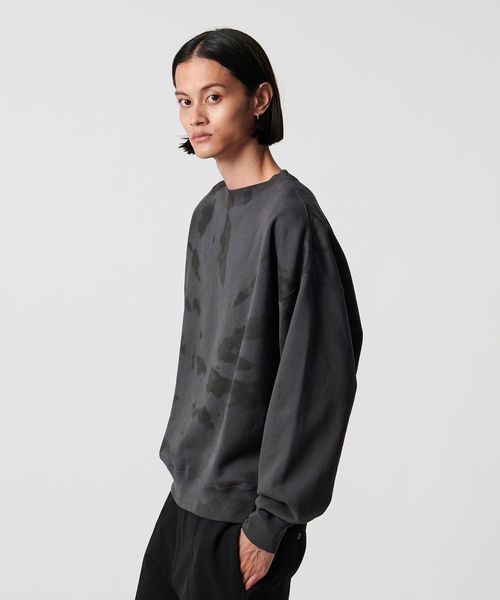 ブラックホールを思わせる渦巻状の表情とカラーリングが目を惹くスウェットプルオーバーです。マーセライズド加工を施したきれいめな質感に、ラフな染柄でニュアンスをつけたダイナミックなカジュアルフィーリングが新鮮な一着。ゆったりとしたワイドシルエットをリブで絞った丸みのあるボディが、メリハリを生む心地よいバランスに。装いにほどよい抜け感とインパクトを与え、自由で飾らないアーバンスタイルへと導きます。