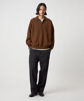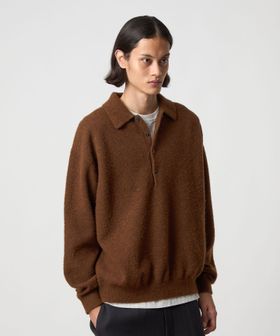 毛玉のような愛らしい表情で仕立てたナッピング加工のポロカラーニットです。ワイドシルエットをリブで絞った丸みのある穏やかなシルエットが特徴です。感覚を狭めた4つボタンが奥行を生み出し、エッジの利いたアクセントをプラス。印象的な装いを叶えながら、気負いすぎないリラクシーなムードが、日常のアーバンスタイルに無理なく寄り添います。