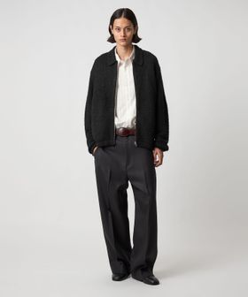イタリア「LINEAPIU」社の素材を採用した、上品なニットブルゾンです。アルパカ×ウール×アクリルをブレンドし、膨らみのある表情とエアリーなウェイト感が特徴です。ほどよいワイドシルエットに、ドロップショルダーで抜け感を加え、軽快なショートレングスでバランスをとったスタイリッシュなシルエット。袖口と裾にはゴムを入れ込みテンションをつけることにより、丸みをもたせたブルゾン感覚のフォルムを生み出しています。イタリア紡績特有の洗練された美しい発色、ニットボディのラグジュアリーな魅力を感じられる一着。