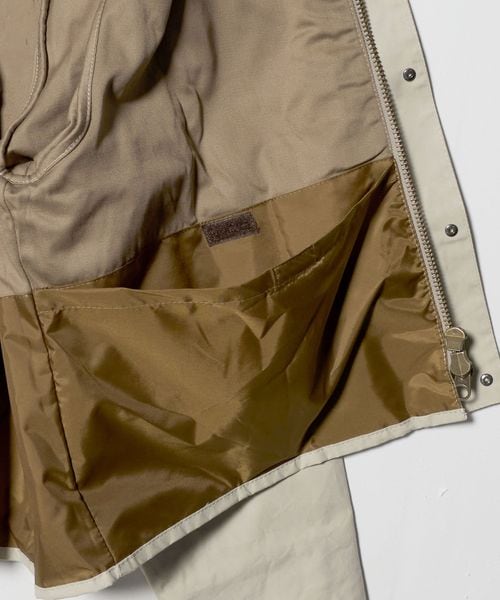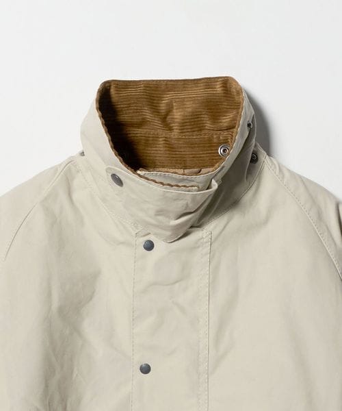 <Barbour>の伝統と<KAPTAIN SUNSHINE>の革新が融合した、限定コラボレーションジャケット。人気モデル「トランスポート」をベースに、職人技とレイヤリングの視点を加え、現代的なライフスタイルにフィットするよう再構築されています。最大の特徴は、ボディと対照的なカラーを利かせた異素材のデタッチャブルフード。左右のリバーシブルウェルトポケットと、内側のディテールは、同コレクションのキルティングライナー(対象品番:12595000002)とドッキング可能な仕様になっています。