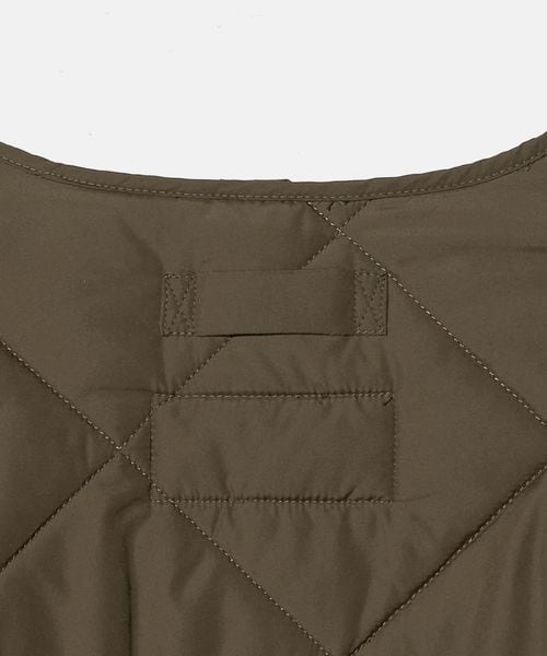 ミリタリージャケットのライナーから着想を得た、クラシックなダイヤモンドキルティングを使用したジャケット。軽く中わたを詰めることで、温かさを保ちながらミニマルで都会的な表情に仕上げています。袖口と後ろ襟元にはスナップボタンが配されており、同コレクションの各アウタージャケット(対象品番:12595000000、対象品番:12595000001)とドッキングも可能です。