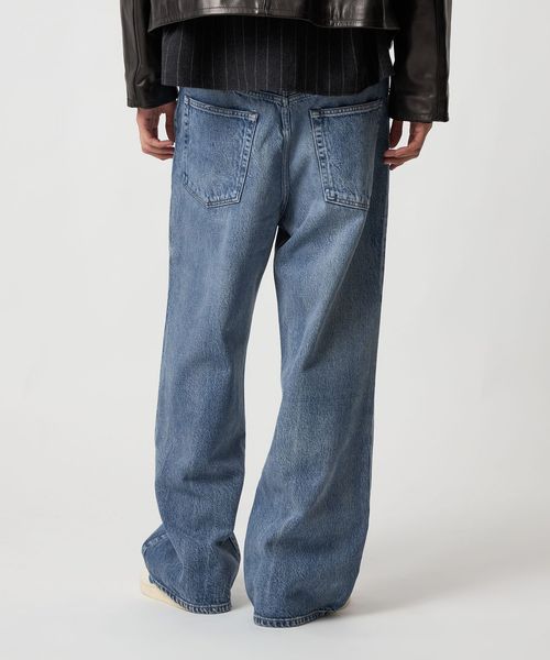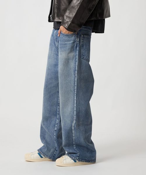 クラシックなブーツカットデニムをベースに、大人が楽しめるバランスにこだわった5ポケットパンツでです。控えめなフレアとやや太めの設定により、大人でもはきやすいシルエットに仕上げました。ブラックは硫化染め、コバルトブルーはインディゴ染めを使用し、14ozクラスのタテムラの少ない独特の縦落ちが特徴です。裾にボリュームを託した絶妙なワイドシルエットが、トレンド感漂う印象的なスタイルへと導きます。