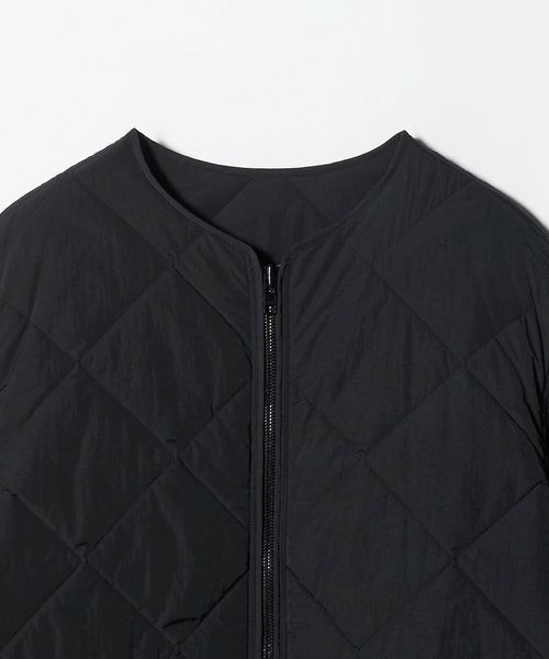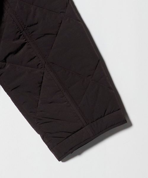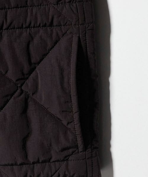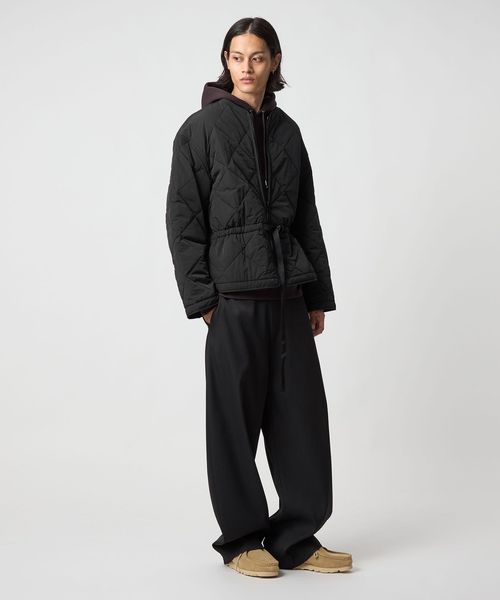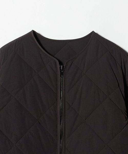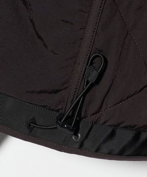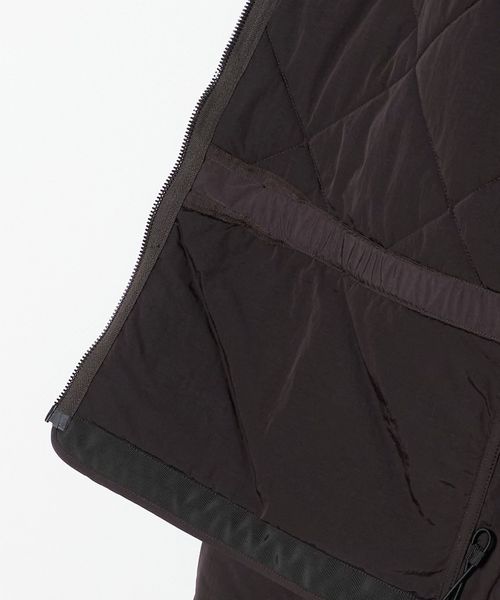 U.S.ミリタリーライナーをベースにデザインしたキルティングライナージャケットです。高級合繊メーカー「LIMONTA EAST」社の40デニールのナイロンワッシャーを採用し、贅沢に両面表地を使用しています。ワッシャー加工により肌離れがよく、軽やかで心地よい袖通しが魅力の一着。横糸に黒の糸を使用することで、ダークブラウンはシャンブレーの陰影のある豊かな色に仕上がっています。オーバーサイズで中わたも適度なボリュームがあり、裾と袖口を絞ることで、バルーンシルエットにもアレンジが可能です。襟ぐりは狭めの設定、フロントファスナーのエレメントの艶がラグジュアリーな魅力を引き上げています。
