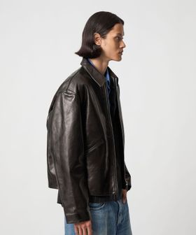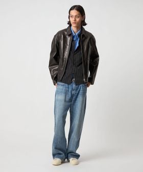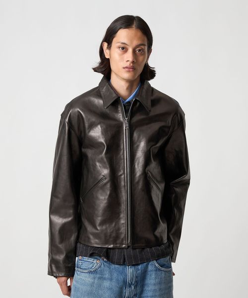 70sトラッカージャケットをベースに現代的な雰囲気で仕上げたレザージャケットです。キメの細かい滑らかなタッチとハリが特徴のホースレザーを使用し、ベジタブルタンニンで鞣した皮を染色、パラフィン加工を施し、仕上げのミリングで表面にアタリを出しました。ディテールはシンプルに、フロントへ配した イタリアメーカー「RACCAGNI」社製ファスナーのエレメントが上品なアクセントをプラス。短めの着丈と長めにとったスリーブレングスとのメリハリのあるバランスがファッションムードを高めてくれます。