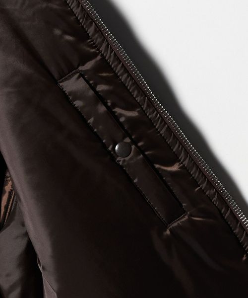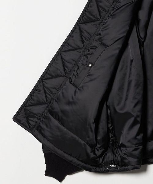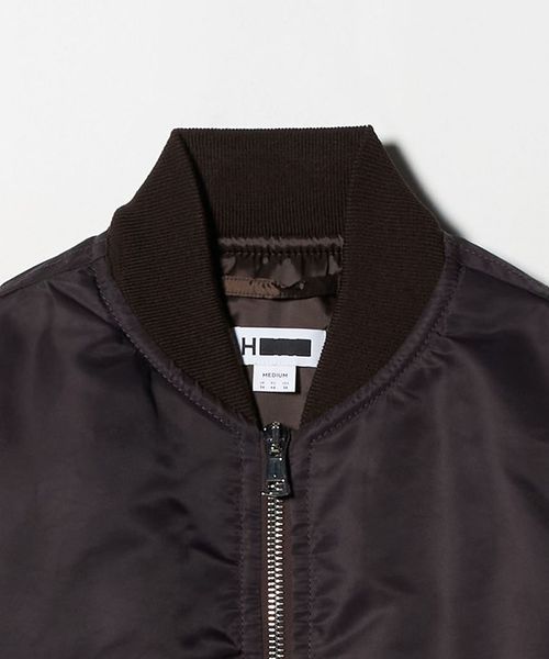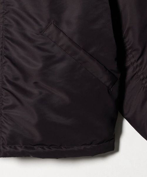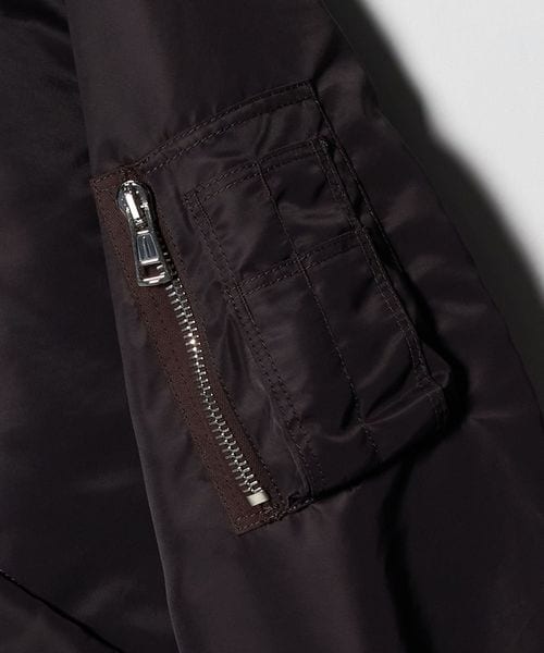 イタリアの高級合繊メーカー「OLMETEX」社のナイロンツイル生地で仕立てたフライトジャケットです。「MA-1」をベースに、接ぎの無い丸編リブやアームポケットなどの伝統的なディテールはそのままに、都会的でモダンな雰囲気にアレンジしました。ナイロン繊維の質や仕上げ技術の高さにより、高密度で肉厚な作りでありながら、柔らかく上品でラグジュアリーな仕上がりが魅力です。イタリアメーカー「RACCAGNI」社製のファスナーを採用し、適度なオーバーサイズ感、リブの詰まり具合などの洗練されたバランスが、ファッションムードを高めてくれます。