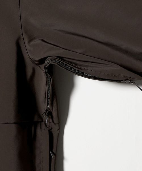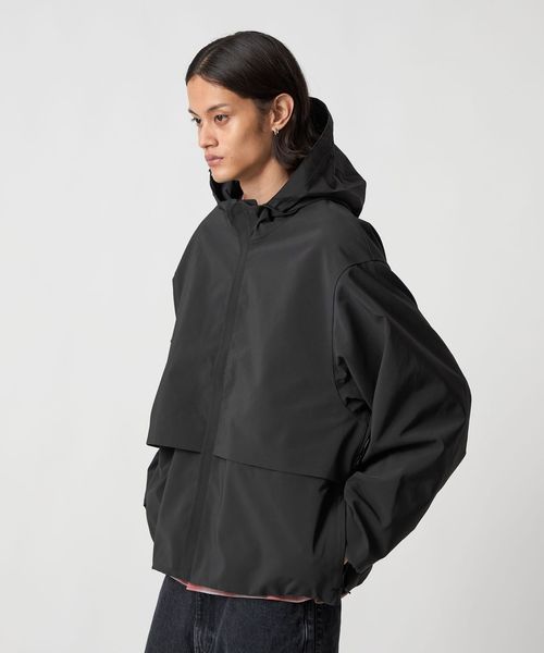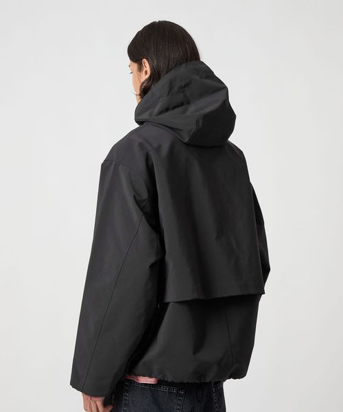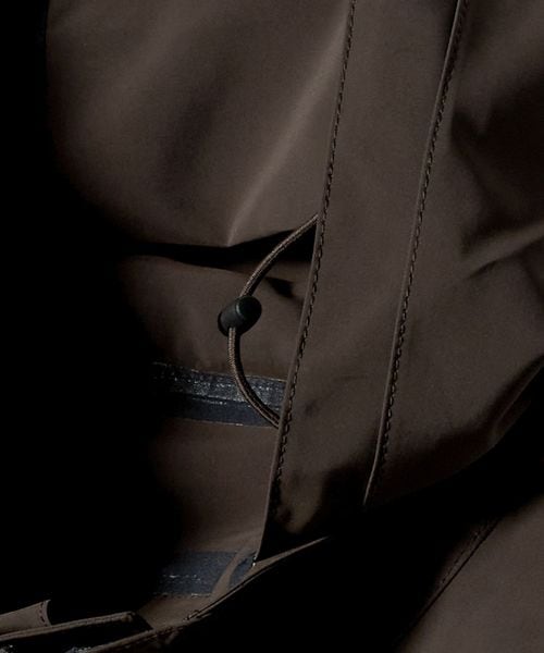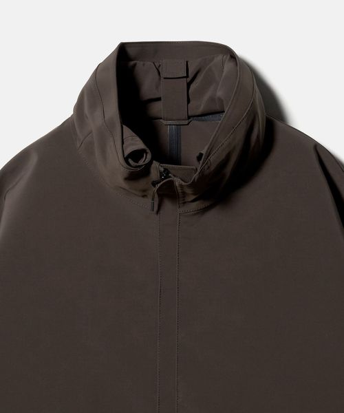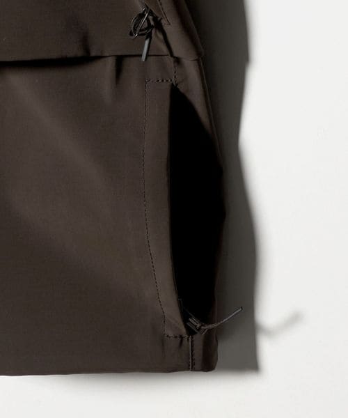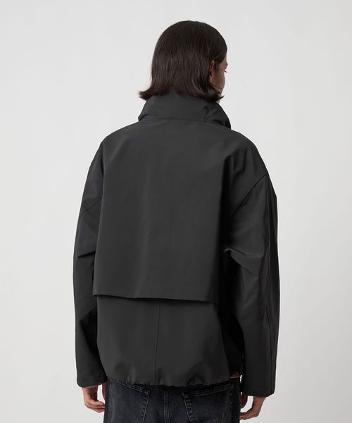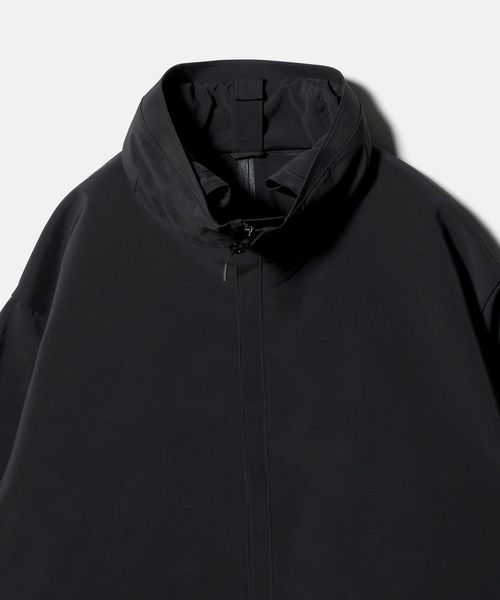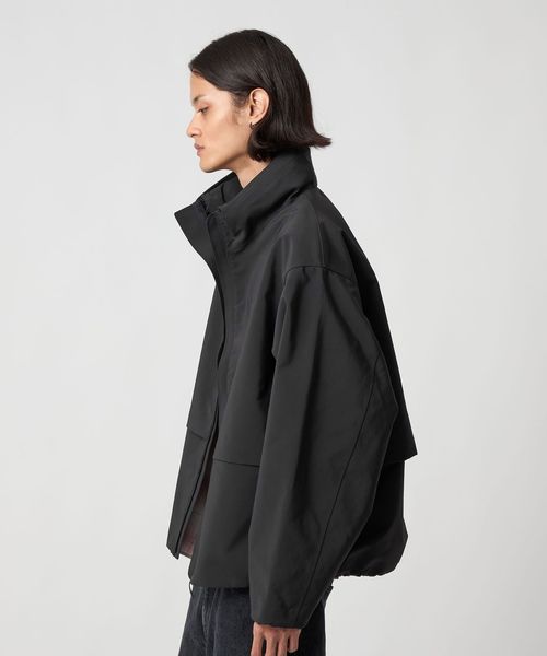 ミニマルなデザインと、大胆なオーバーサイズシルエットが特徴のスタンドカラージャケットです。前年のモデルから、前後にヨークをつけたデザインにアップデート。裾を絞ってバルーンシルエットとしてもアレンジができ、絞らない状態でも美しいバランスになるよう、裾幅をややコンパクトめに調整しました。ポリエステル×ナイロンの割繊糸を使用して織られた高密度タフタを2枚貼り合わせ、ボンディング加工した生地を採用。割繊糸による柔らかなピーチタッチが特徴で、スポーティーでありながら上品な素材感が魅力です。ワードローブの定番として寄り添いながら、トレンド問わず長く愛用いただけるおすすめの一着。