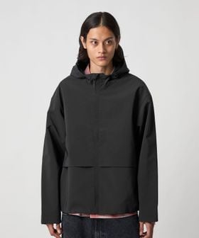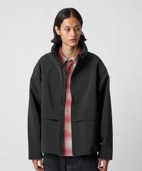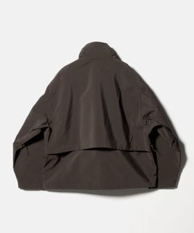 ミニマルなデザインと、大胆なオーバーサイズシルエットが特徴のスタンドカラージャケットです。前年のモデルから、前後にヨークをつけたデザインにアップデート。裾を絞ってバルーンシルエットとしてもアレンジができ、絞らない状態でも美しいバランスになるよう、裾幅をややコンパクトめに調整しました。ポリエステル×ナイロンの割繊糸を使用して織られた高密度タフタを2枚貼り合わせ、ボンディング加工した生地を採用。割繊糸による柔らかなピーチタッチが特徴で、スポーティーでありながら上品な素材感が魅力です。ワードローブの定番として寄り添いながら、トレンド問わず長く愛用いただけるおすすめの一着。
