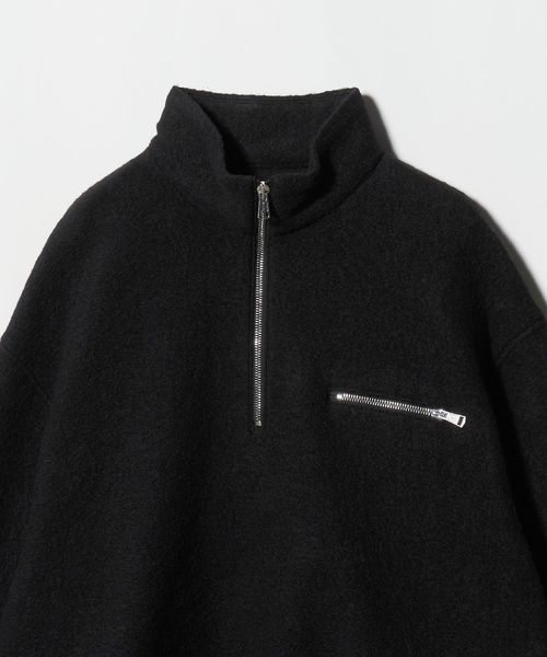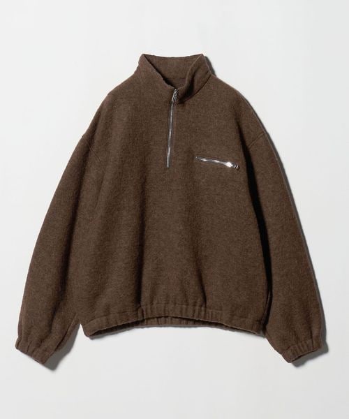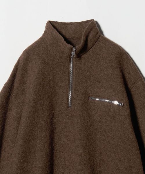 軽やかなウールスライバー生地で仕立てた、ハーフジップブルゾンです。表面にウール、裏面にポリエステル構造のため、迫力を保ちながらもマイルドな着心地に。ワイドな身幅に、袖口、裾内側にゴムを入れて丸みのある穏やかなシルエットを生み出しています。両脇にポケットを施し、アウターライクにも活躍する一着。イタリアメーカー「RACCAGNI」社製のファスナーを採用し、艶やかな光沢が上品なアクセントを添えます。スラックス合わせも決まりやすく、自由で飾らないアーバンスタイルへと導きます。