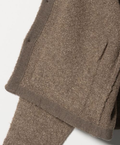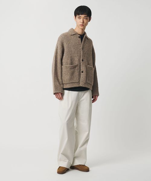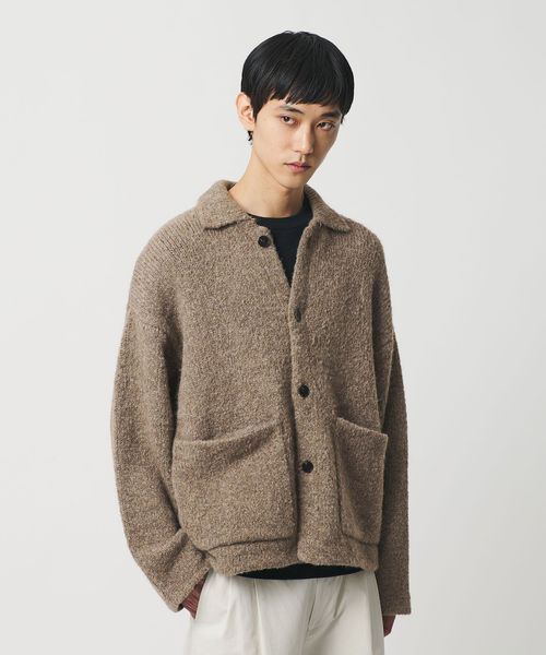 カバーオール感覚で気軽に羽織れるニットアウターです。ワークテイストなカバーオールデザインをベースに、イタリア紡績メーカー「PINORI」社の上質な素材で仕立てました。上品な毛足とボリューム感を備えつつ、ふっくらと軽やかな着心地が魅力です。アウター代わりに楽しむのはもちろん、カーディガンとしてコートのインナーに覗かせてカジュアルに合わせるのもおすすめ。ゆったりとしたシルエットで、インナーを選ばず幅広く着こなせる万能な一着。