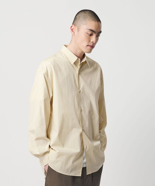 光沢としなやかなハリがあり、仕立て映えする上質な生地が魅力の120/2ブロードクロスを使用したシャツです。デザインは定番のレギュラーカラーシャツに、ほどよくゆとりを生むボディシルエット、ボリュームをもたせたスリーブバランスが特徴。ホワイトとストライプ柄は白蝶貝、その他のカラーはボディと同色に染めたシェル釦を使用し、縫製も運針細かく丁寧な作りにこだわった完成度の高いアイテム。一枚着のほか、季節の変わり目の羽織りとしても長くご愛用いただける、大人のカジュアルスタイルに欠かせないオールマイティーな一着。