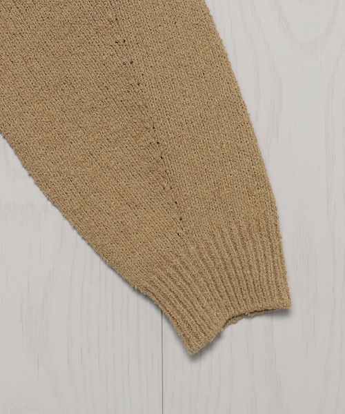 ループ状の形状が特徴的なコットンを原料に使用し、ミドルゲージで編み立てたニットジップジャケットです。着応えのあるしっかりしたボディながら、リラックス感のあるナチュラルな素材が着心地の良い一着。フライトブルゾンのように裾に絞りを加えた丸みのあるシルエットが、肩肘張らない印象的なスタイルを演出します。すっきりとした短めの着丈バランスで、トップスとしてはもちろん、軽めのアウターとしても活躍するマルチな一着。