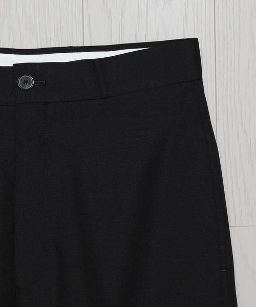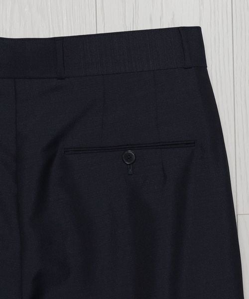 飽きのこないベーシックなシルエットにこだわったパンツです。モヘヤ混のウールポプリンを表地に使用し、モヘヤ特有の張りと光沢が活かされたアイテム。太すぎず細すぎず、ストレートとテーパードの中間の絶妙なシルエットが、幅広いスタイルに寄り添います。バックポケットの細幅玉縁や細幅ベルトループなど、シンプルながら上品さが際立つディテールも魅力。生地に横張りがあることで綺麗なラインを生み出し、ドライタッチで軽やかな風合いが盛夏時季まで楽しめる万能な一着。