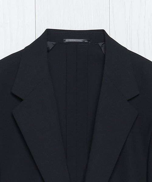 90年代のモード感漂う、ややゆとりを持たせた直線的なシルエットとナローラペルが特徴のシングルブレステッドジャケットです。ハイツイストした細番手の上質な梳毛糸で織ったライトウェイトドスキンを表地に使用し、縁が細く繊細な形状のホーンボタンを採用した上品なデザイン。