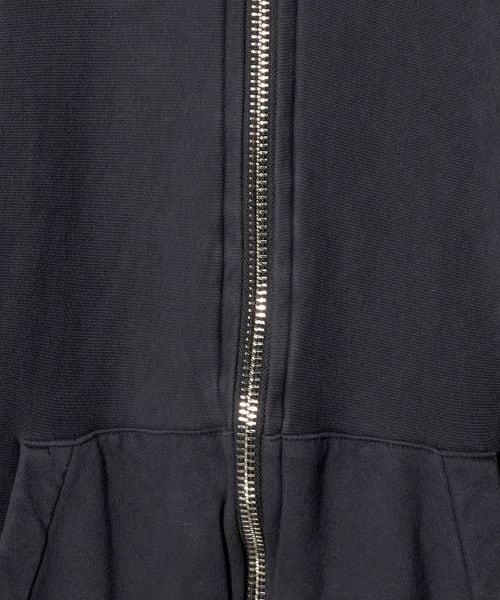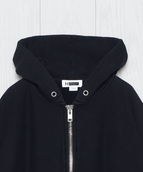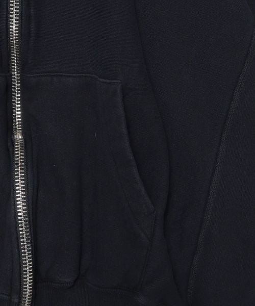 アメリカンヴィンテージスウェットを彷彿とさせるボディが特徴的なジップアップフーディです。タンブラー乾燥を繰り返したかのような、脱脂感のある乾いた質感と波打ったフロントファスナーが魅力です。クラシックなボディに敢えて光沢感の強いファスナーを合わせることで、モダンな印象に仕上げました。リラックス感がありながら、合わせるボトムスを選ばない着丈短めのボクシーシルエット、リブで絞った心地いいフィット感が着映えのするスタイリッシュな装いを演出します。アウターライクな着応えに加え、コートのインに重ねてカジュアルな外しとしても活躍いただけるアイテム。いつもの日常のスタイルに新鮮なムードをもたらしてくれる、ワードローブの定番に相応しいおすすめの一着。
