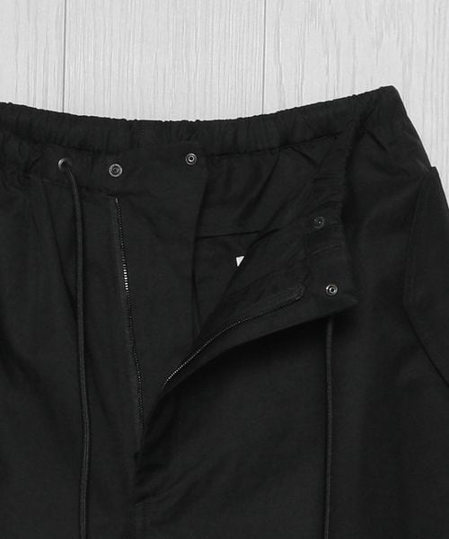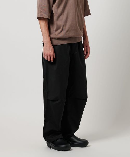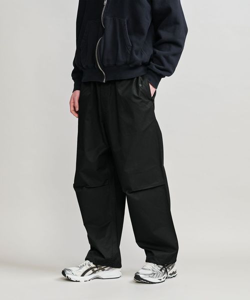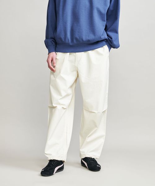 イタリアの生地メーカーOLMETEX社のコットン/ナイロンギャバジンを使用したイージーパンツです。U.S.ARMYのオーバーパンツをベースに、ディーテールを削ぎ落としミニマルで上品な印象に仕上げながら、張りのある生地感を活かしたオーバーシルエットが存在感を際立たせています。ワイドストレートではくのはもちろん、スピンドルを絞って変化をつけたアレンジもおすすめです。アーバンムード漂うクリーンなカジュアルスタイルに導く万能な一着。