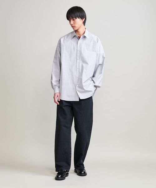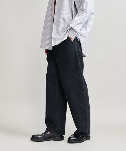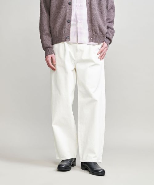 ワタリから膝にかけて大胆に広がったワイドシルエットが特徴の1プリーツバギーパンツです。あえて裾にかけて僅かにテーパードさせることによって、大人の方でもはきやすい絶妙なバランスに仕上げました。13.5ozのデニムを使用し、自然な経糸ムラの表情がカジュアルに見えすぎず上品な印象を演出。デニムバリエの新たな一本として、アーバンスタイルに幅広く寄り添います。