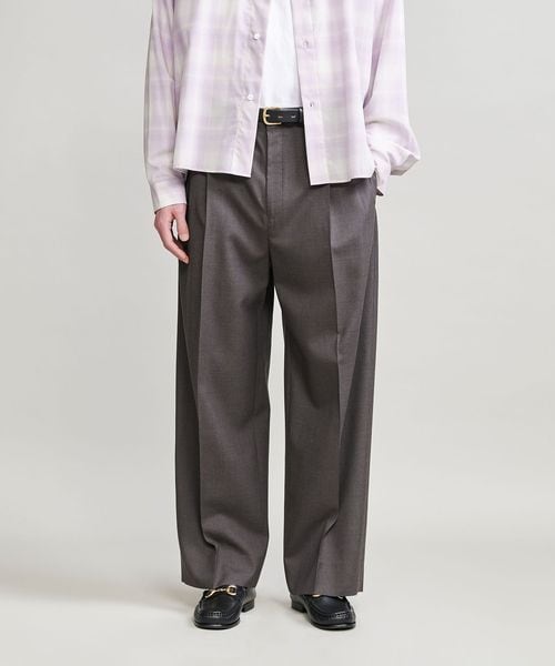 <H>ウールトロピカル 2プリーツワイドパンツ