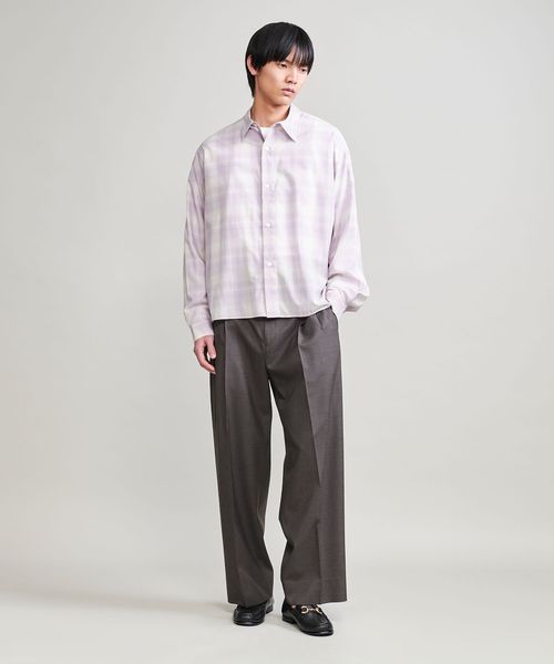 適度な光沢と滑らかな肌当たりが特徴の素材を用いたワイドパンツです。上質な原料で織り上げたサマートロピカルウールを使用し、2プリーツながら腰回りはすっきりさせることで、モードなシルエットに仕上げました。裏地無しの軽やかな生地感は、盛夏時期にも頼れる一着。ほど良いリラックス感と端正な表情が、アーバンムード漂う大人のカジュアルスタイルを演出します。