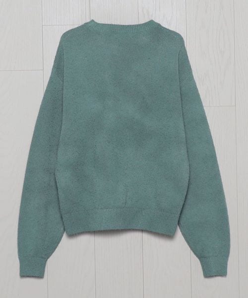 絶妙なムラ感のあるカラーリングで仕上げたニットプルオーバーです。特殊な2種類の糸で作り上げたボディに製品染めでフェード感と絶妙なムラ感のある表情に染め上げています。1種類はドライタッチで生地のコシとボディのベースを作るコットン、もう1種類は糸の状態でツイストされた独特の表情を生み出すツイストコットンを使用。着応えがありつつも、さらりとした肌ざわりが心地よく、独特な表情が魅力のボディに仕上がっています。気負いすぎないリラクシーなムードが、きれいめなスラックスとの組み合わせやモノトーンカラーのアウターとも好相性。印象的な装いに導きながら、プレイフルなスタイルに寄り添うおすすめの一着。