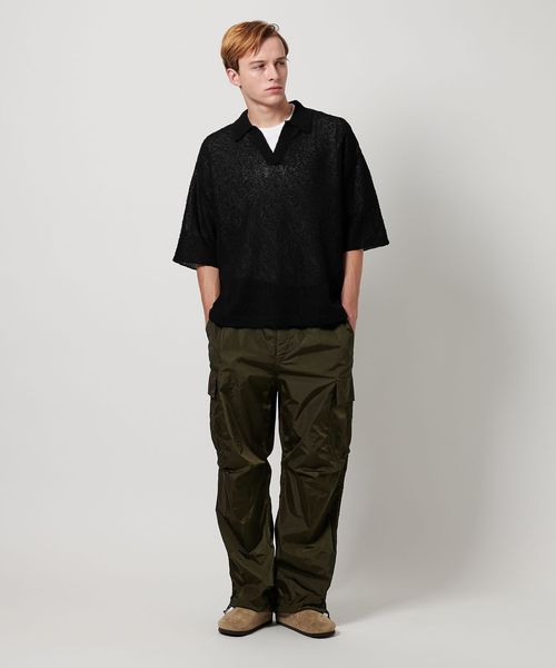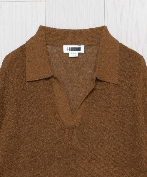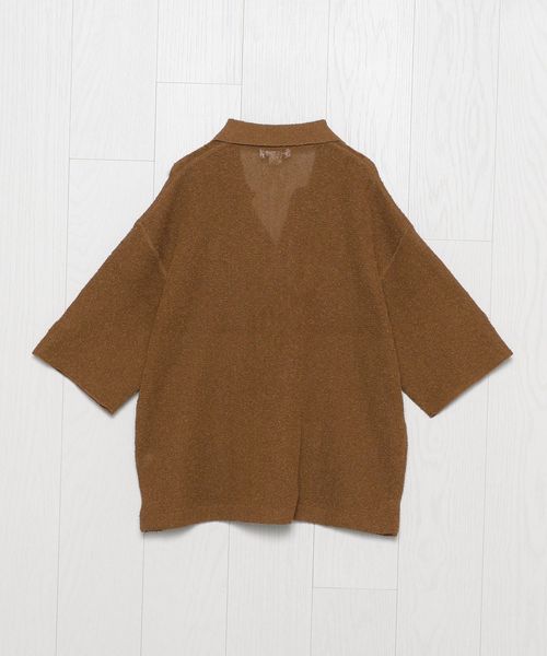 ドライタッチな風合いと、シアーな表情が涼し気なムードを演出するスキッパーニットです。ネップ糸と極細糸の2種類を組み合わせて作り上げた独特の生地感が特徴です。開放感のあるネックに、力の抜けたドロップショルダー、身体が泳ぐゆったりとりた身幅シルエットが心地よいバランスを生み出します。インナーにTシャツやノースリーブを組み合わせたレイヤードも映える一着。肩肘張らないニュアンス感が、自由な装いを叶えながら雰囲気のあるスタイルを演出します。