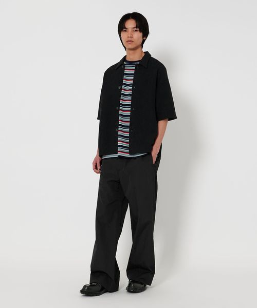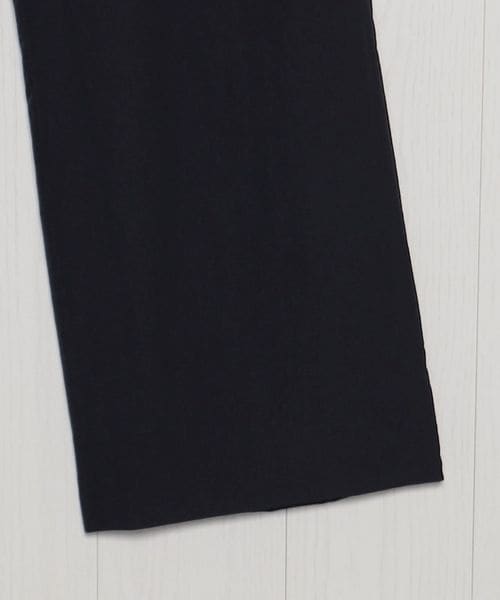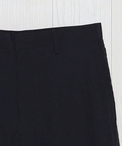 スポーティな素材に、マーベルト付きのスラックス仕立ての組み合わせが新鮮なワイドパンツです。さりげなくもギャップのあるデザインが、モード感漂うストリートスタイルを演出します。イタリアの生地メーカー「OLMETEX」社のナイロンカルゼを使用し、特殊ワッシャー加工とPUコーティングを施すことにより、ナチュラルな表面感に加え、張りと光沢が活かされた一着。デザインは、ノープリーツ型に、腰周りにゆとりをもたせずすっきりさせることで、膝から裾にかけてのワイドレッグが強調されたスタイリッシュなシルエットに仕上がりました。軽快な装いを叶えながら、洗練されたカジュアルスタイルに導くおすすめの一着。