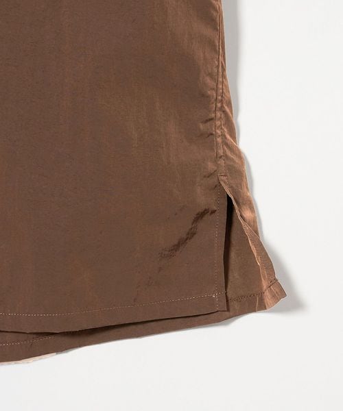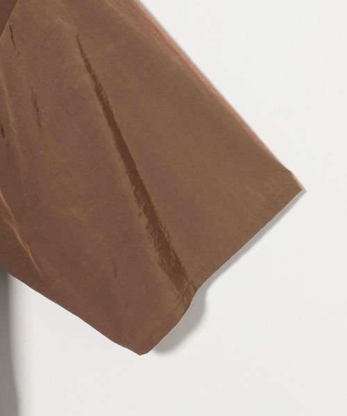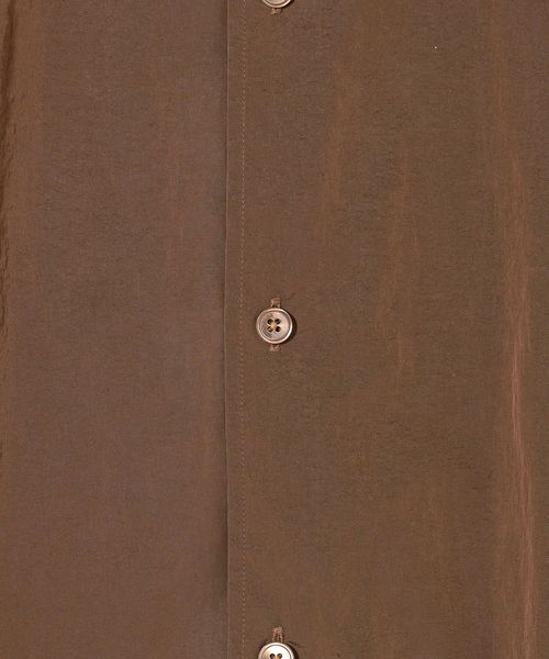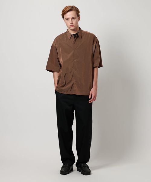 イタリアの高級合繊メーカーLIMONTA社が2006年に設立した「LIMONTA EAST」の40デニールナイロンワッシャー生地を採用したショートスリーブシャツです。ワッシャー加工により肌への接触が少なく、軽やかで心地良い袖通しが魅力です。経糸にブラックの糸を使用していることで、ダークブラウンの色目はシャンブレーに表現されています。ボックス型のゆったりとしたシルエットに、貝釦を用いた装飾が華やかに調和し、素材にこだわったミニマルな佇まいが洗練されたカジュアルスタイルを演出。同シリーズのショーツ(対象品番:12191862205)を合わせたセットアップコーディネートもおすすめです。