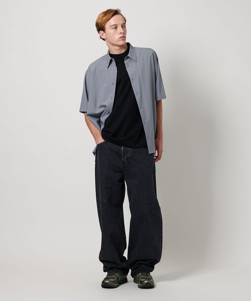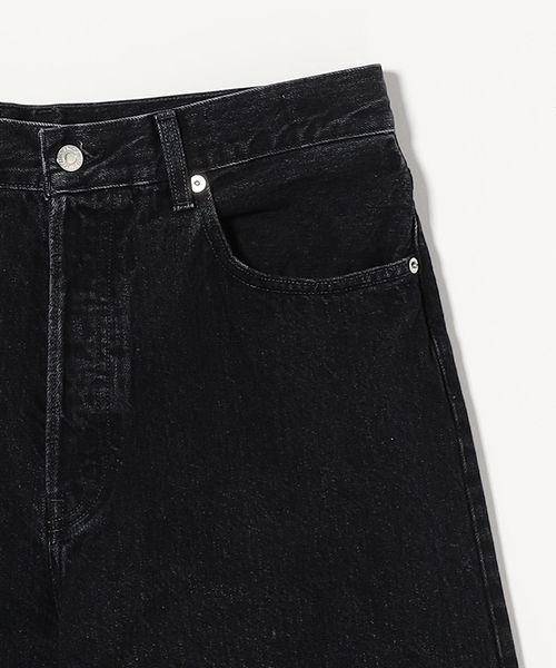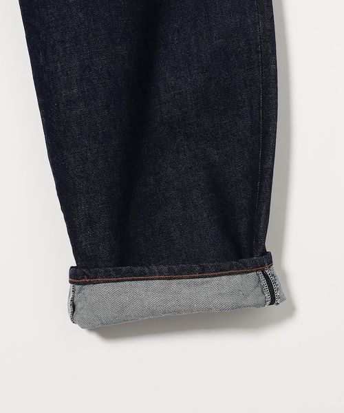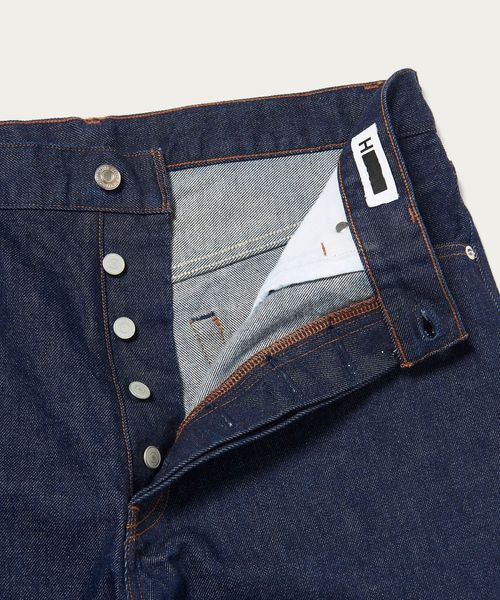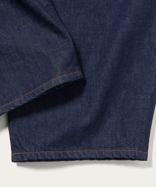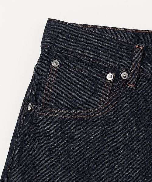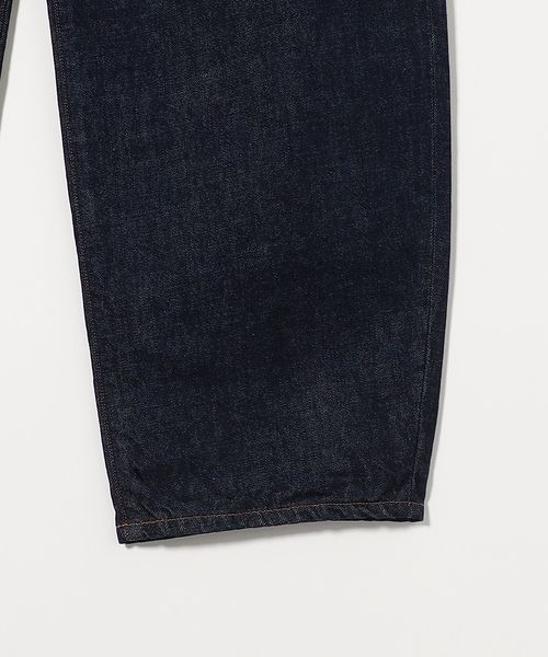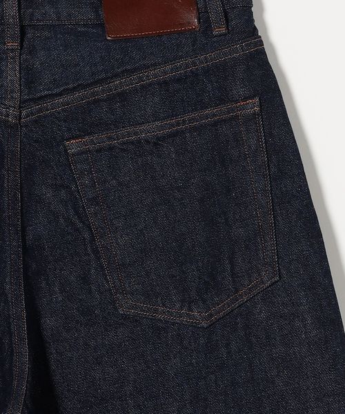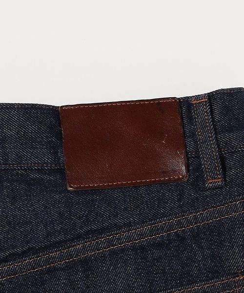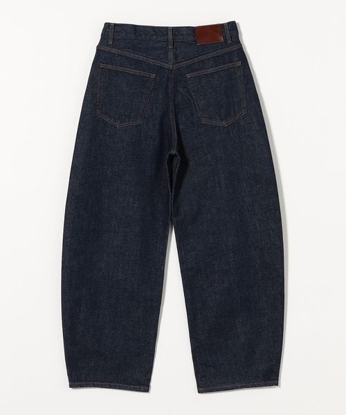 トレンドのカーブシルエットで仕立てた5ポケットデニムパンツです。13.5ozの硫化染めブラックデニムとインディゴデニムを使用し、自然なタテ糸ムラの表情がカジュアル感を和らげ上品な印象を演出します。膨らみのピークを一般的な膝位置ではなく、少し下がったふくらはぎ付近になるようにカーブを入れた個性的なシルエットが特徴です。主張感のあるフォルムでシンプルなTシャツ合わせも決まりやすく、軽快なショート丈アウターとも好相性。レザーパッチがアクセントを添え、クラス感あふれるアーバンスタイルに導きます。