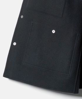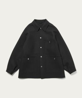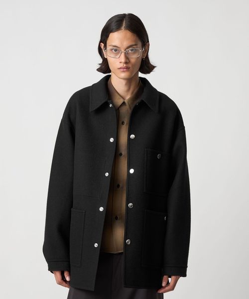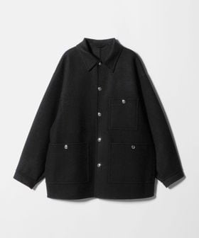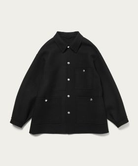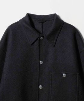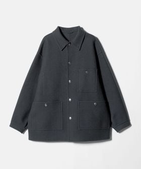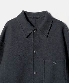 上品なカジュアルスタイルを叶える、ダブルフェイスメルトンのカバーオールジャケットです。ウールにカシミヤを混紡したメルトン生地を使用し、リバー縫製と呼ばれる縫い代の見えない仕様で丁寧に仕立てられています。上質な糸を贅沢にしっかりと打ち込むことにより、充分な肉感と張りが生まれ、着応えのある一着に。襟を立てて襟先のボタンを留めるとスタンドカラーとしても着用ができ、合わせるスタイルによってアレンジが可能です。3ポケットのカバーオールをベースに、ワーク臭を消すようにミニマルにデザインすることで、トレンドに左右されず長く付き合えるエッセンシャルなアウターに仕上がりました。