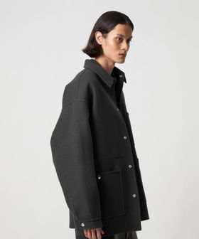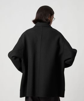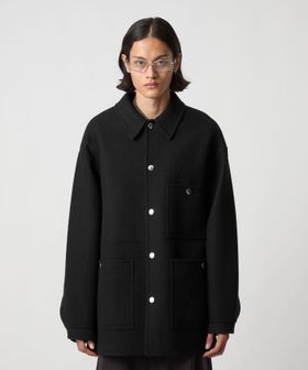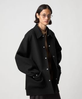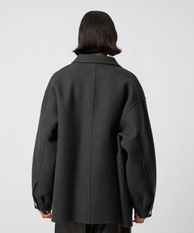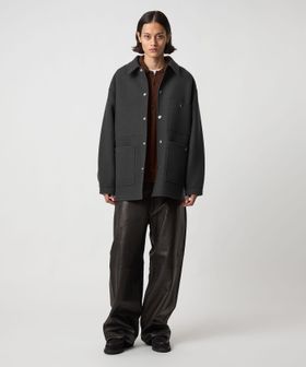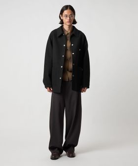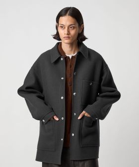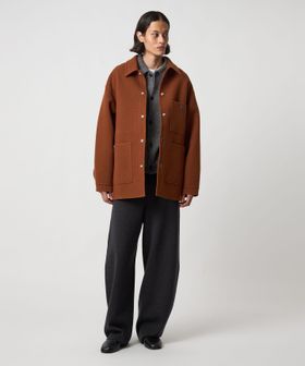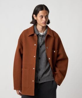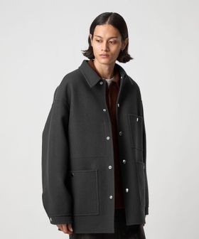 上品なカジュアルスタイルを叶える、ダブルフェイスメルトンのカバーオールジャケットです。ウールにカシミヤを混紡したメルトン生地を使用し、リバー縫製と呼ばれる縫い代の見えない仕様で丁寧に仕立てられています。上質な糸を贅沢にしっかりと打ち込むことにより、充分な肉感と張りが生まれ、着応えのある一着に。襟を立てて襟先のボタンを留めるとスタンドカラーとしても着用ができ、合わせるスタイルによってアレンジが可能です。3ポケットのカバーオールをベースに、ワーク臭を消すようにミニマルにデザインすることで、トレンドに左右されず長く付き合えるエッセンシャルなアウターに仕上がりました。