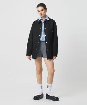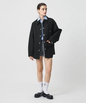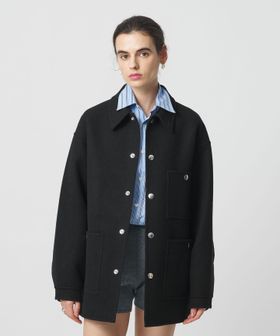 上品なカジュアルスタイルを叶える、ダブルフェイスメルトンのカバーオールジャケットです。ウールにカシミヤを混紡したメルトン生地を使用し、リバー縫製と呼ばれる縫い代の見えない仕様で丁寧に仕立てられています。上質な糸を贅沢にしっかりと打ち込むことにより、充分な肉感と張りが生まれ、着応えのある一着に。襟を立てて襟先のボタンを留めるとスタンドカラーとしても着用ができ、合わせるスタイルによってアレンジが可能です。3ポケットのカバーオールをベースに、ワーク臭を消すようにミニマルにデザインすることで、トレンドに左右されず長く付き合えるエッセンシャルなアウターに仕上がりました。