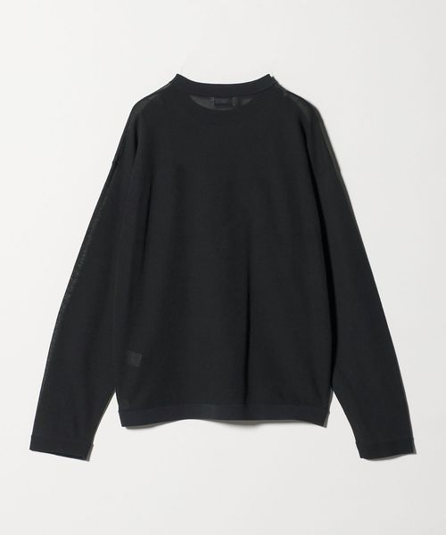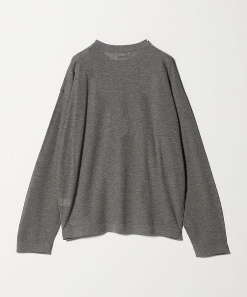 セミシアーな表情が魅力のロングスリーブTシャツです。コットン×ナイロン糸を使用した、ミラノリブ仕上げの美しい編み地が特徴。ミラノリブが描くクリーンなシルエットに加え、すっきりとしたクロップド丈と長めの袖が心地よいバランスを演出します。軽やかで気負わず着られ、カジュアルにもモードにも活躍する万能な一着。