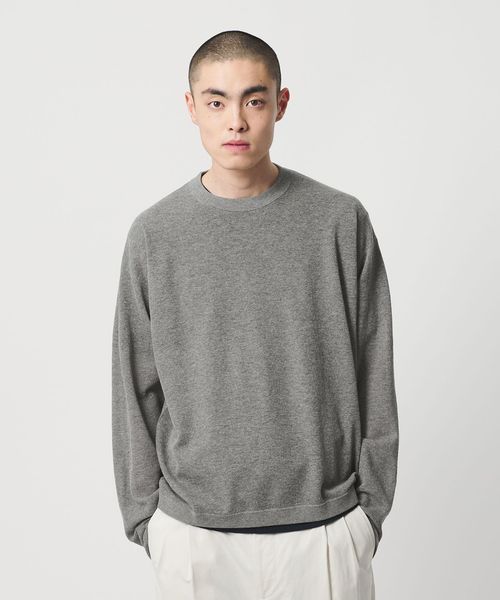 セミシアーな表情が魅力のロングスリーブTシャツです。コットン×ナイロン糸を使用した、ミラノリブ仕上げの美しい編み地が特徴。ミラノリブが描くクリーンなシルエットに加え、すっきりとしたクロップド丈と長めの袖が心地よいバランスを演出します。軽やかで気負わず着られ、カジュアルにもモードにも活躍する万能な一着。