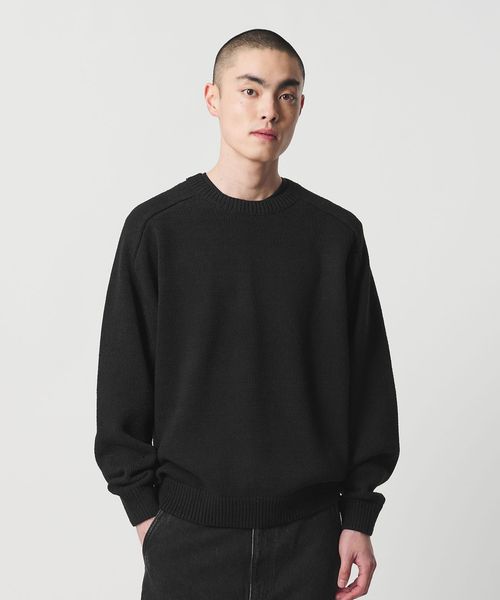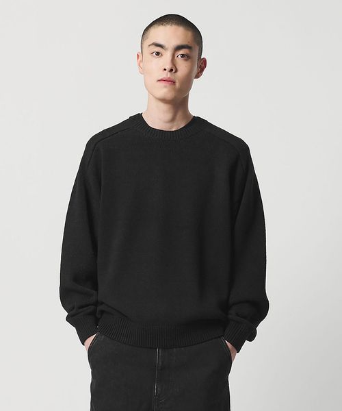 ナチュラルな表情を活かしたクラシックなサドルショルダーニットです。紡績工程で余った原料を活用したローシルクを使用し、さらに糸の段階でギマ加工を施すことで、ドライタッチでハリのある質感に仕上げました。袖にボリュームを持たせ、短めのクロップド丈が印象的なスタイルを演出。上質な素材感と力の抜けた独特な雰囲気が洗練された魅力を放ちます。