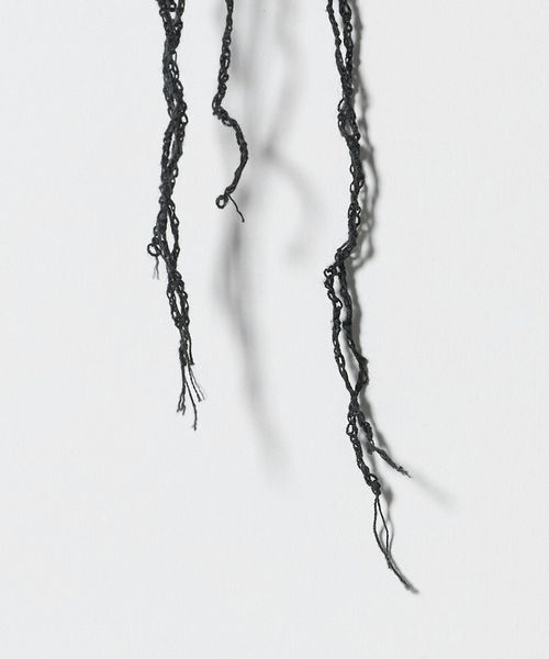 テープや、袖や裾からはみ出る生地といったデコラティブなディテールが施されている。
