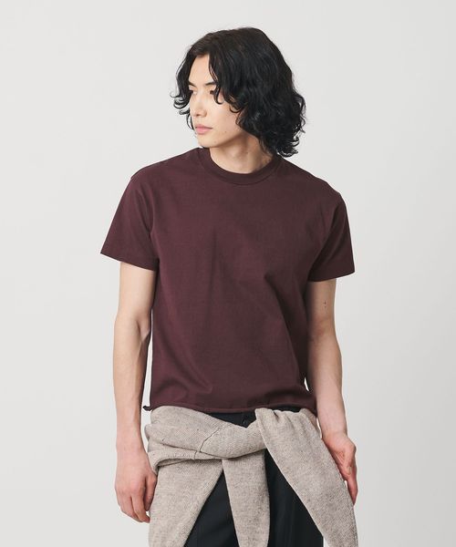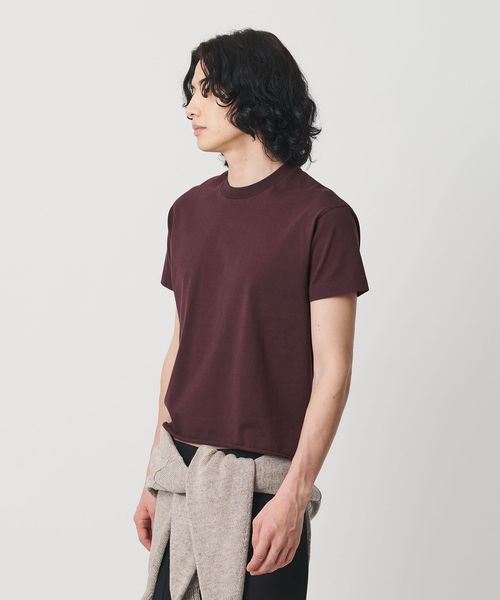 コンパクトなシルエットが魅力のタイニーTシャツです。ナチュラルな質感とやや目の詰まったコットン天竺を採用し、製品洗いで仕上げたドライな質感が特徴です。裾をカットオフで仕上げ、シンプルな中にほどよい抜け感をプラス。ワイドボトムとも相性がよく、90年代を思わせるサイズバランスがスタイリングにさりげないニュアンスを添えます。