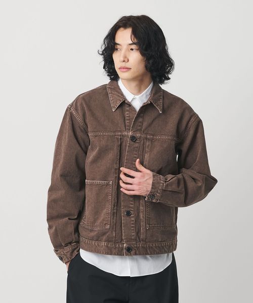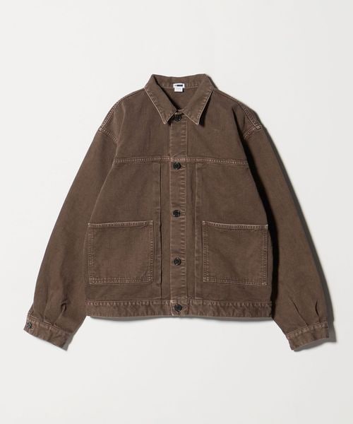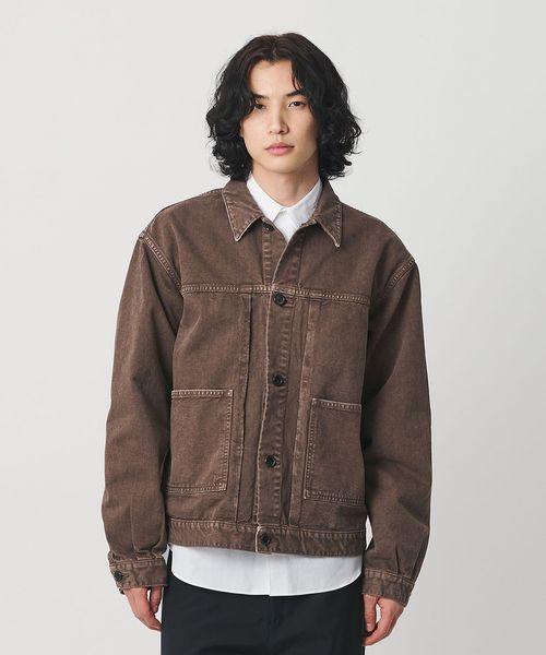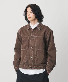 クラシックなGジャンとカバーオールの要素をミックスした、ショートレングスのワークジャケットです。一般的なGジャンほど短すぎない絶妙な着丈に加え、タックによって丸みを帯びたバックシルエットが独特なフォルムを生み出しています。素材には、13.5ozの左綾ヘビーチノを採用。製品染め後に長時間洗いを施すことで深みのある表情に仕上げました。装飾はホーンボタンをあしらい、ボディに馴染みつつ上品な印象をプラス。ワイドな身幅とボリュームのあるスリーブが心地よいバランスに導きながら、土臭さの無い都会的なムードが洗練されたカジュアルスタイルに導きます。